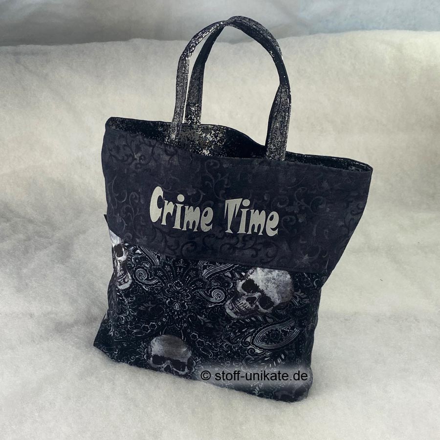 | Farben/Motive: | Mehrfarbig, schwarz, weiß, Grautöne, anthrazit, gemustert Motive: Schriftzug „Crime Time, Gothic, Totenköpfe |