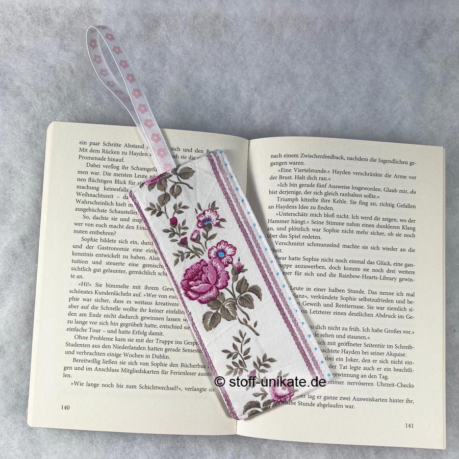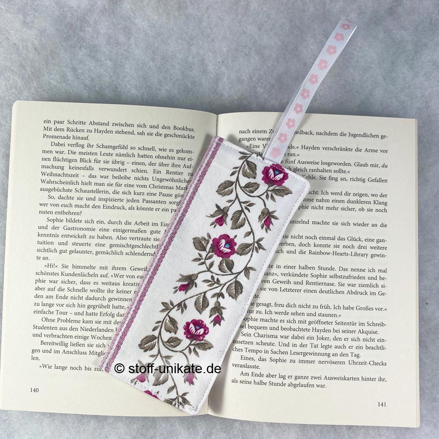 - Handgefertigtes Stoff-Lesezeichen mit Band