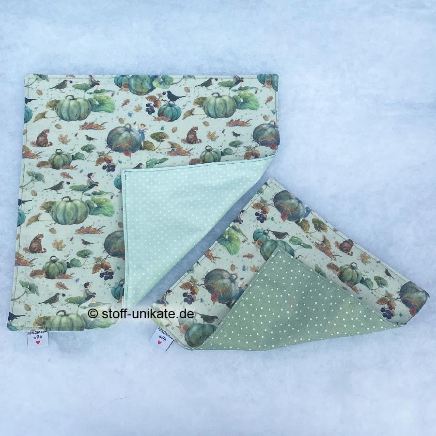 Material: | Vorderseiten: Hochwertige Designer-Stoffe von acufactum aus 100 % Baumwolle (Kürbisbeet) Rückseiten: Hochwertige Stoffe aus 100 % Baumwolle (gepunktet) |