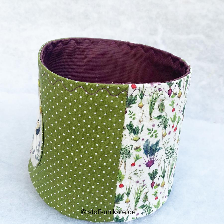 Schlagwörter: Geschenk-Set, Utensilo, Stoffkorb, Stoffkörbchen, acufactum, Gemüse, Kohl, Garten, Gärtner, Gartenfreund, Gartenliebhaber, Gartenliebe, Gartengkück, grüner Daumen, violett, grün, Kohlrabi, Morrüben, Möhren, Karotte, Radieschen, Kohl. gepunktet, Punkte, bunt, Kräuter