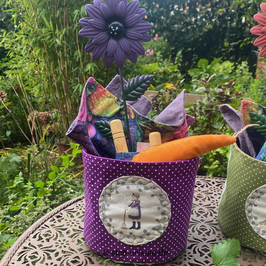 - Über diese schönen Geschenk-Sets bestehend aus jeweils einem Stoffkörbchen/Utensilo mit hübscher Applikation sowie vielen, liebevoll zusammengestellten Garten-Accessoires freut sich bestimmt jeder Garten- und Blumenfreund!