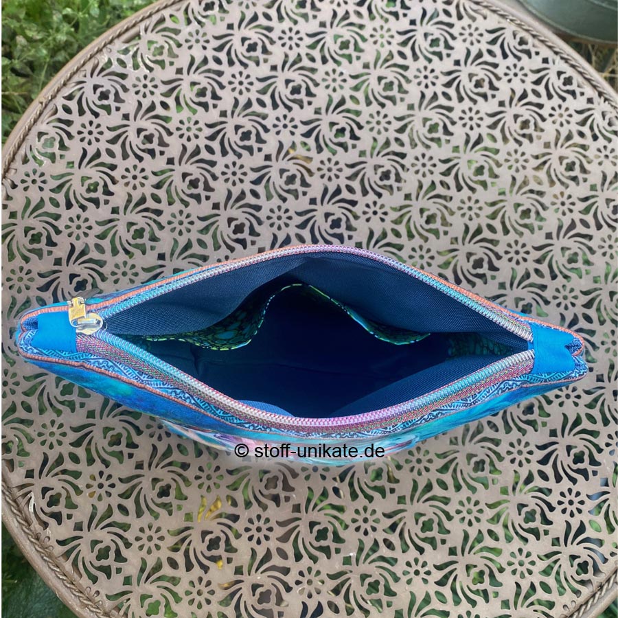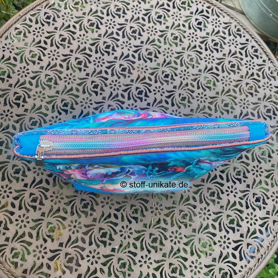 Handgefertigte Kosmetiktasche mit traumhaften Pferdemotiven in Aquarell-Optik außen aus Baumwollstoffen genäht. Innen abgefüttert mit wasserabweisendem Stoff und zwei Innentaschen. Größe; ca. 27 x 22  x 10 cm (B x H x T). Ein wunderschönes Geschenk für Pferdemädchen.