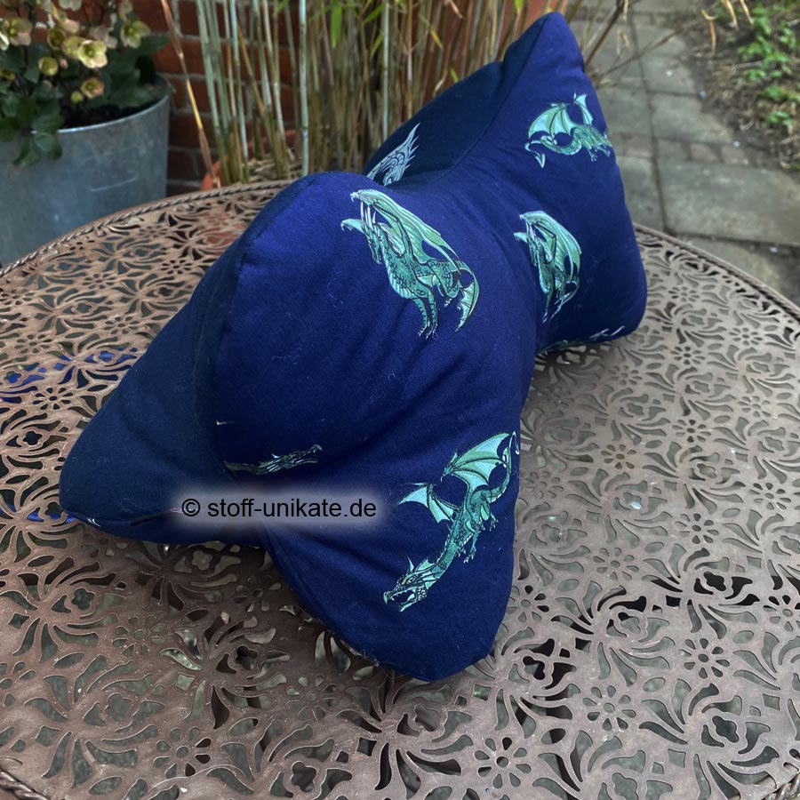Drachen, Drachenschuppen, Dragon,, Fantasy, Fantasie, Märchen, blau, Fabelwesen, grün,, Bügelbild,, Nackenkissen, Nackenknochen, Buchkissen, Buchstütze, Leseknochen, Entspannung, Lesen, Fernsehen, Baumwolle, Füllwatte, Naturfaser, Handarbeit, handmade in Germany, hergestellt in Deutschland, Einzelstück, Unikat, Designer, Künstler, Kissen