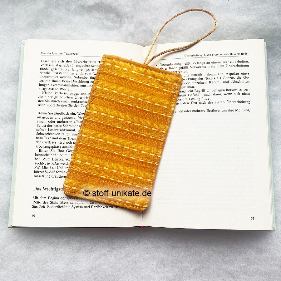 - Ein liebevoll genähtes Lesezeichen aus hochwertigen Baumwollstoffen