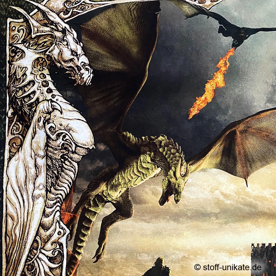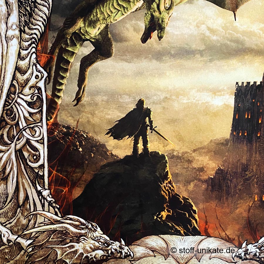 | Farben/Motive: | Mehrfarbig, Grüntöne, oliv, khaki, Brauntöne Motiv: Fantasy, mystische Drachen, Schwertkämpfer (siehe Fotos) | ||